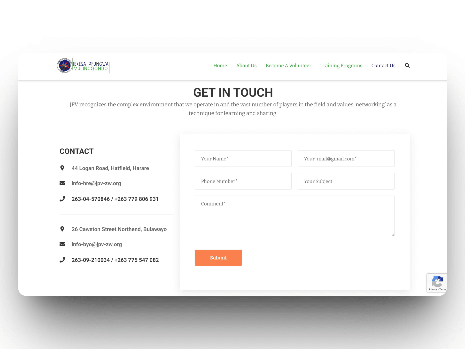The website showcases JPV's work in fostering partnerships, building capacity through training programs, and advocating for marginalized communities across multiple regions in Zimbabwe. We implemented a clean, professional design that highlights their training programs, volunteer opportunities, and donation channels while maintaining easy navigation for diverse audiences.